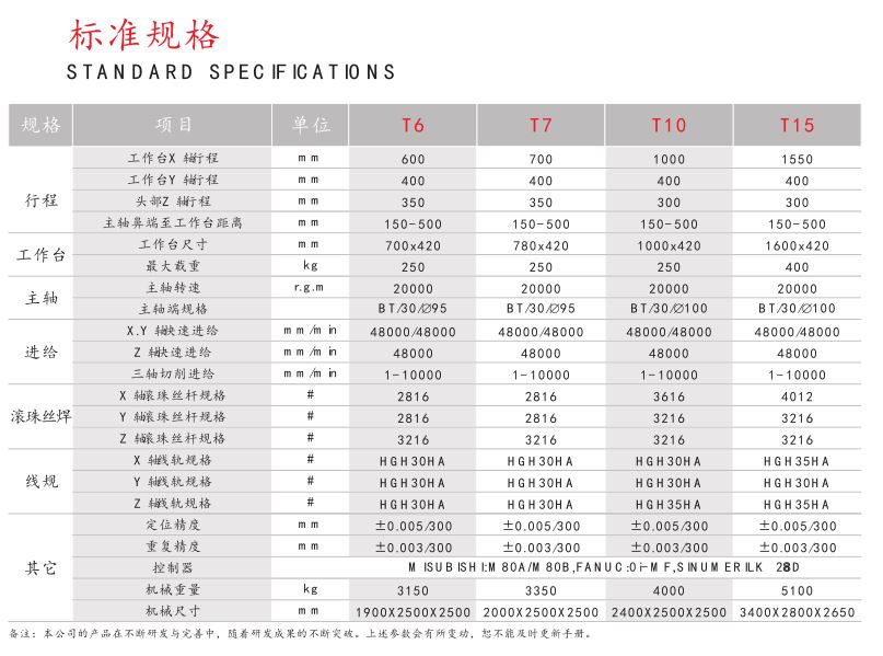 三軸絲桿導軌均采用日本TH K 或臺灣PM I 等知名品牌, 軸承采用N SK 、N TN 等國際一線品牌;